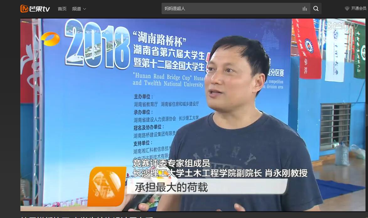 湖南卫视5月14日午间新闻对5月11—13日在我校举行的“湖南路桥杯”第六届湖南省大学生结构设计竞赛暨第十二届全国大学生结构设计分赛区竞赛进行了报道。
