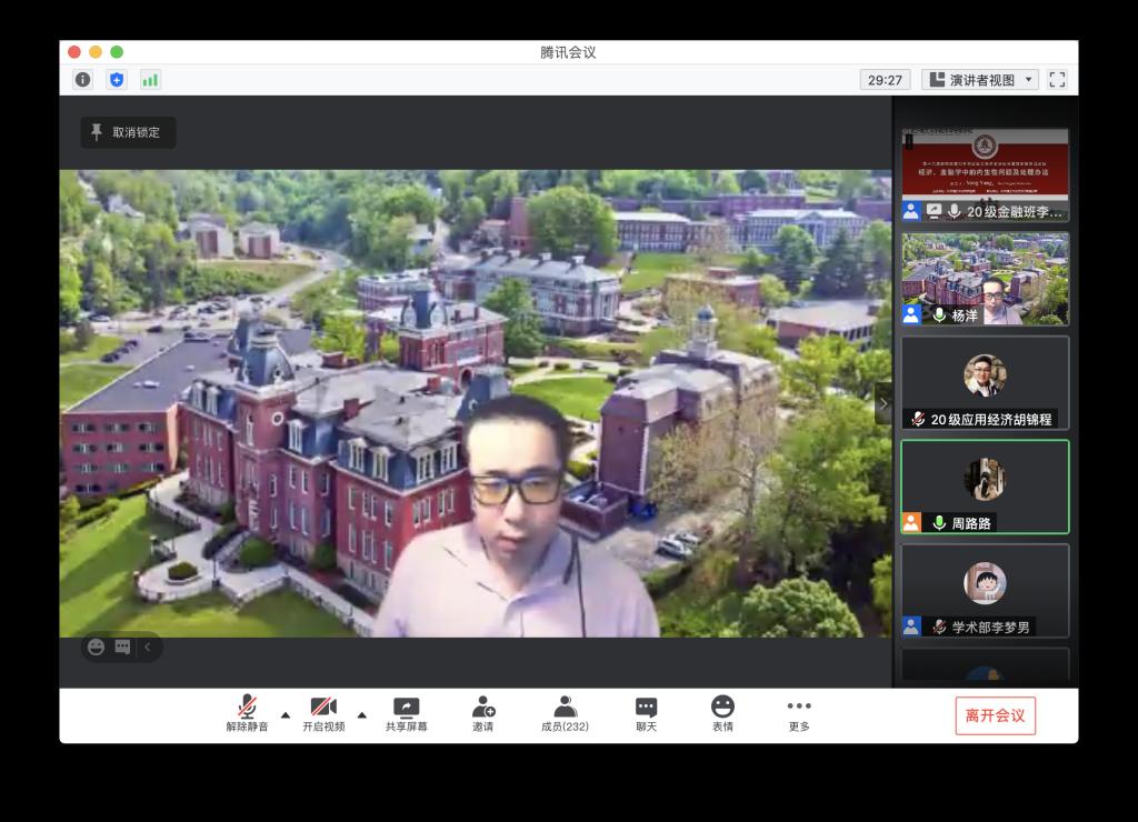 11月15日上午,美国西弗吉尼亚大学杨洋博士为经济与管理学院学生作了题为“经济、金融学中的内生性问题及处理办法”的线上学术讲座。此次讲座是第十六届研究生博力学术论坛之经济全球化与管理创新专题论坛第二期,讲座由经管学院副院长彭新宇主持,辅导员周路路及本院近300名硕士研究生、本科生餐加。